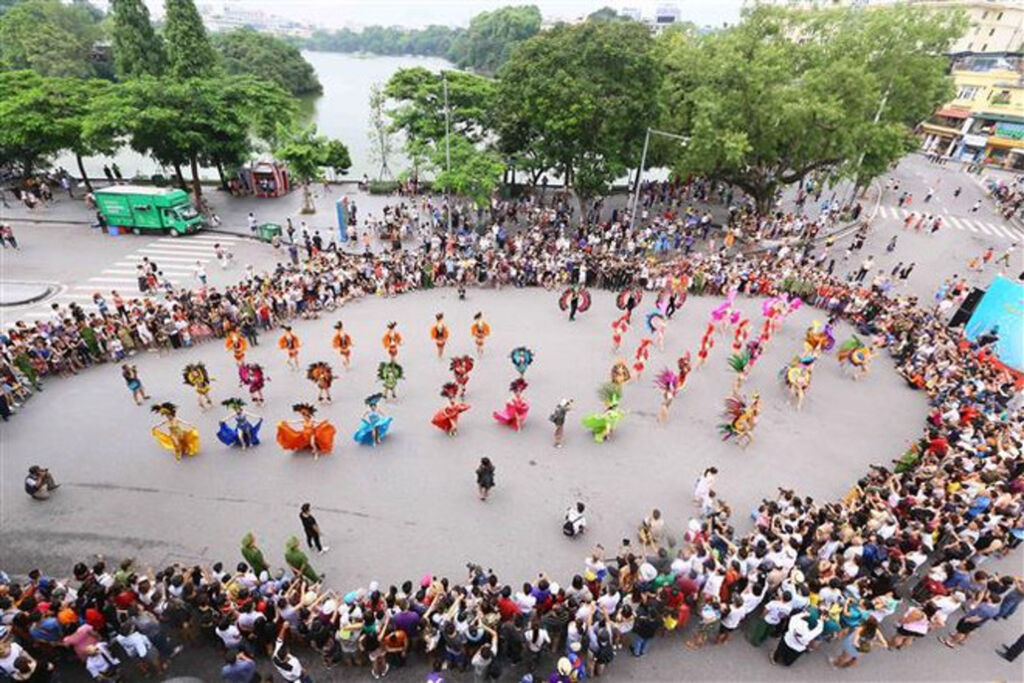 Lễ hội đường phố với chủ đề “Tinh hoa Hà Nội - Hội tụ và tỏa sáng”. Ảnh: TTXVN phát