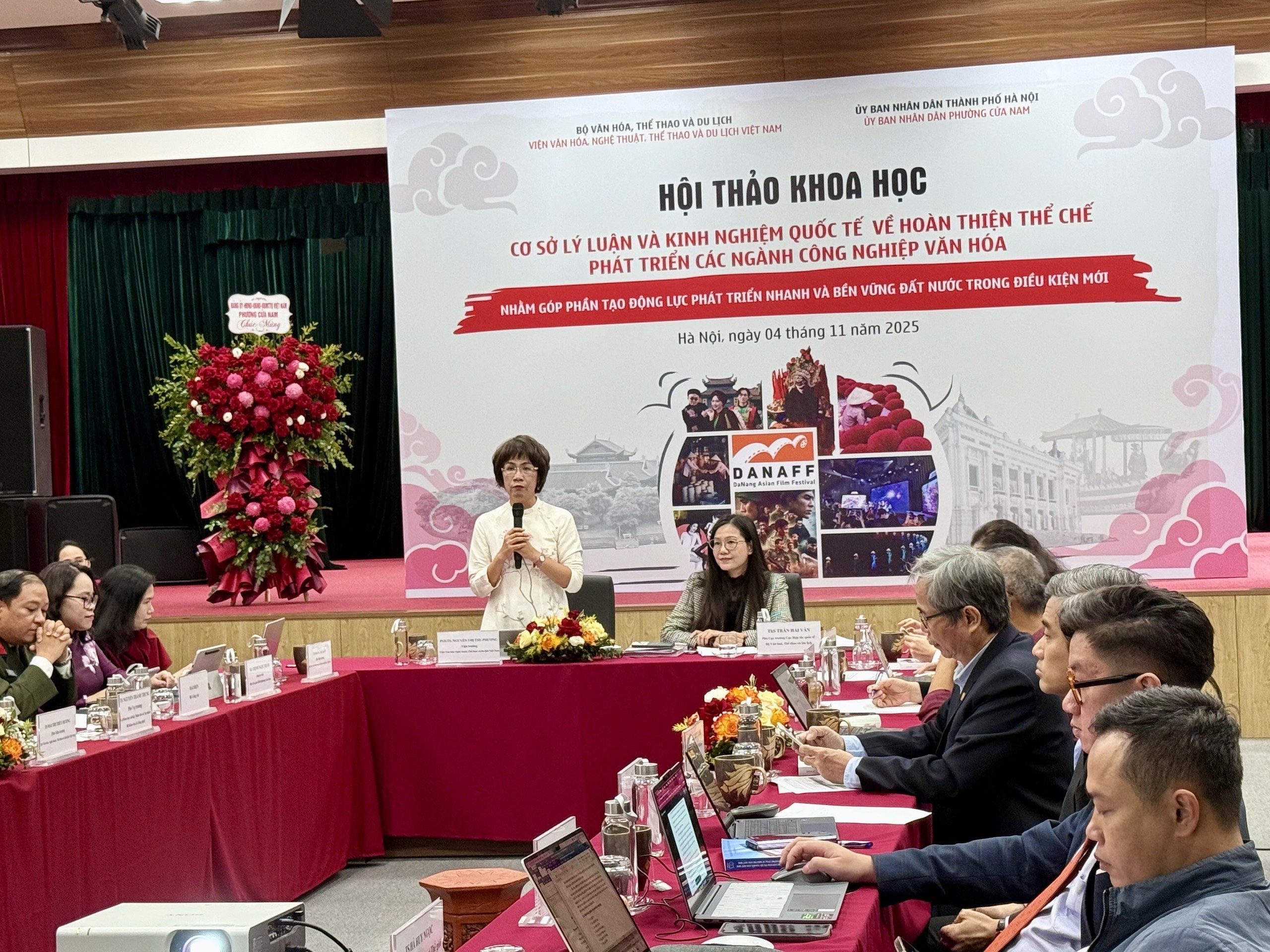 Phát biểu đề dẫn tại hội thảo, Phó giáo sư, Tiến sĩ Nguyễn Thị Thu Phương, Viện trưởng Viện Văn hóa Nghệ thuật, Thể thao và Du lịch Việt Nam cho biết, Chiến lược phát triển các ngành công nghiệp văn hóa Việt Nam đến năm 2020, tầm nhìn đến năm 2030 ban hành năm 2016 đã xác lập các ngành công nghiệp văn hóa là một lĩnh vực kinh tế có đóng góp trực tiếp cho tăng trưởng, việc làm, thu ngân sách; đồng thời là kênh gia tăng sức mạnh mềm văn hóa Việt Nam từ đó tăng cường vị thế quốc tế của Việt Nam thông qua sản phẩm, dịch vụ và hình ảnh văn hóa, con người Việt Nam.
